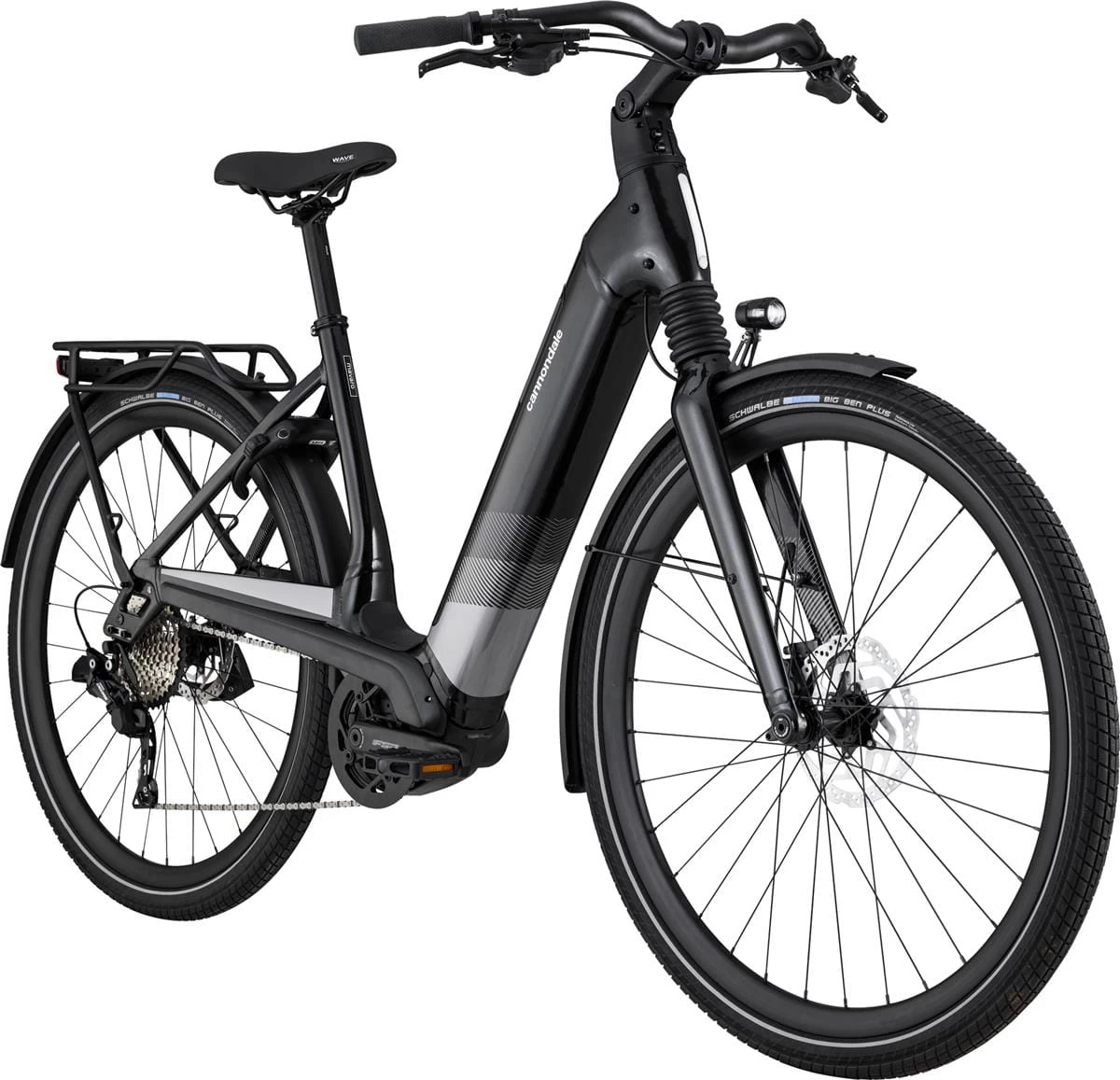 Rahmen: Mavaro Neo Si SmartForm C1 Alloy step-thru frame, removable downtube battery, fully internal cable routing, 135x9mm sliding dropout, post mount disc, headtube waterbottle mounts, integrated daytime running light, HDT child seat/cargo mount compatible