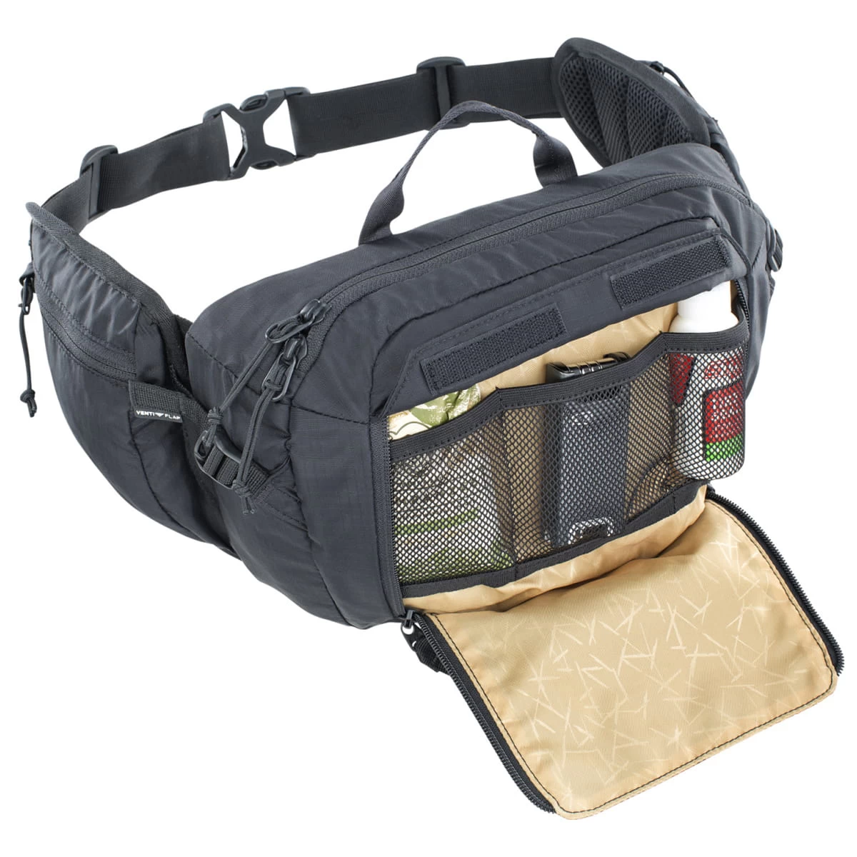 Die Evoc Hip Pack kommt mit einer optimierten Rückenbelüftung ideal ffür Bike Runden mit wenig Equipment . Durch das Ventil-Flap System lässt sich der Abstand der Gürteltasche zum Rücken und damit die Belüftung der Auflagefläche individuell einstellen.